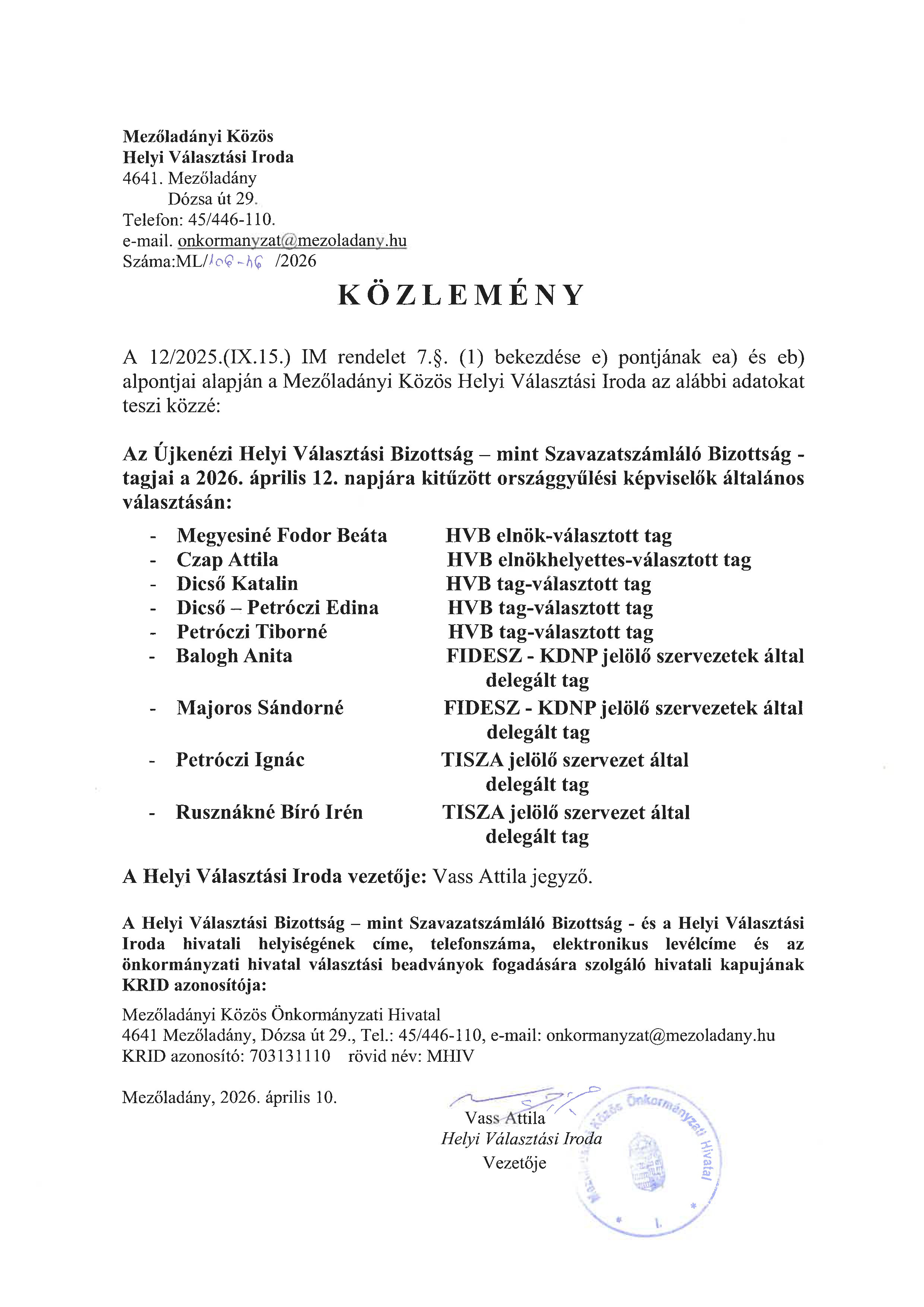Határozat az Országgyűlési Választás pártok által delegált tagjairól